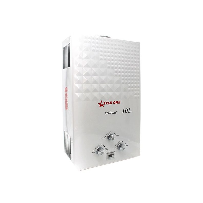 Chauffe Bain Star One à Gaz Bouteille - Débit d’eau 10 Litres/min - Pression de l’eau: 0.02-1.0 MPA - Capacité: 10 litres - Système d’allumage: automatique - Economie d’énergie Affichage digitale de la température– Couleur: Blanc - Garantie 1 an
