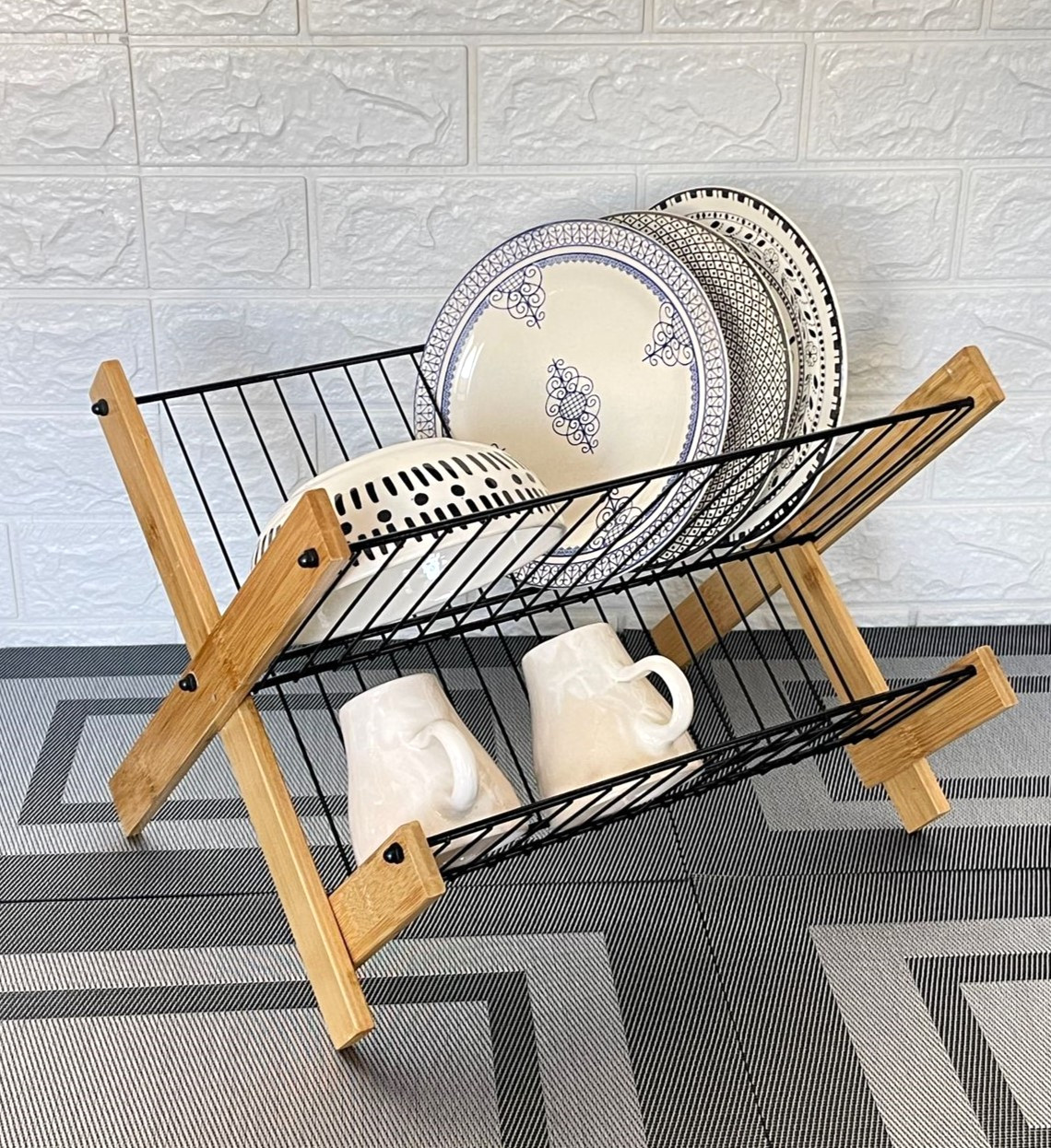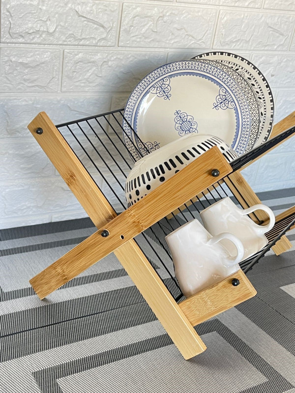 Egouttoir à vaisselle pliable en bambou , 2 niveaux