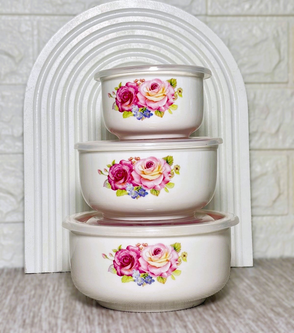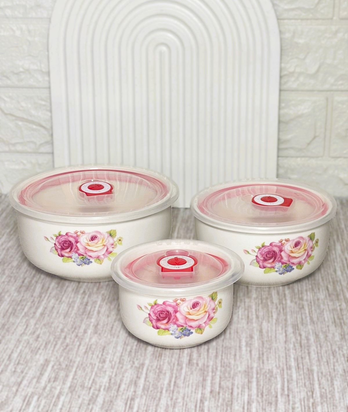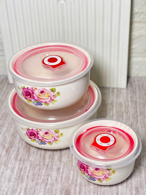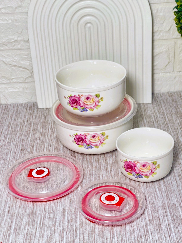 Ensemble de 3 bols en porcelaine céramique avec couvercle