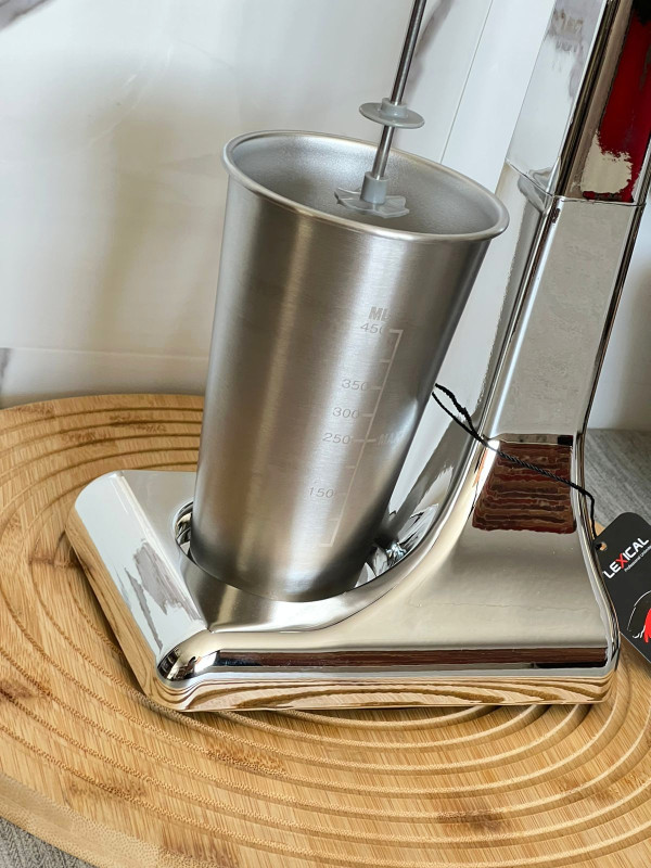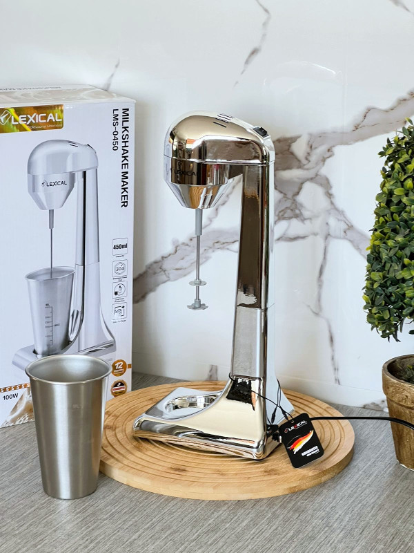 Machine à Milk-Shake LEXICAL - Puissance: 100 Watts - Capacité de la tasse: 450 ml - Vitesse de rotation: 22 000 tours/min - Matériau de la tasse: Acier inoxydable - Interrupteur marche/arrêt - Protection contre la surchauffe - Pieds en caoutchouc antidérapants - Accessoires inclus: Tête plate et tête ondulée - design élégant et format compact - Nettoyage rapide - Facile à utiliser - Idéal pour la maison, le bureau, le restaurant, les hôtels et au-delà - Couleur: Blanc