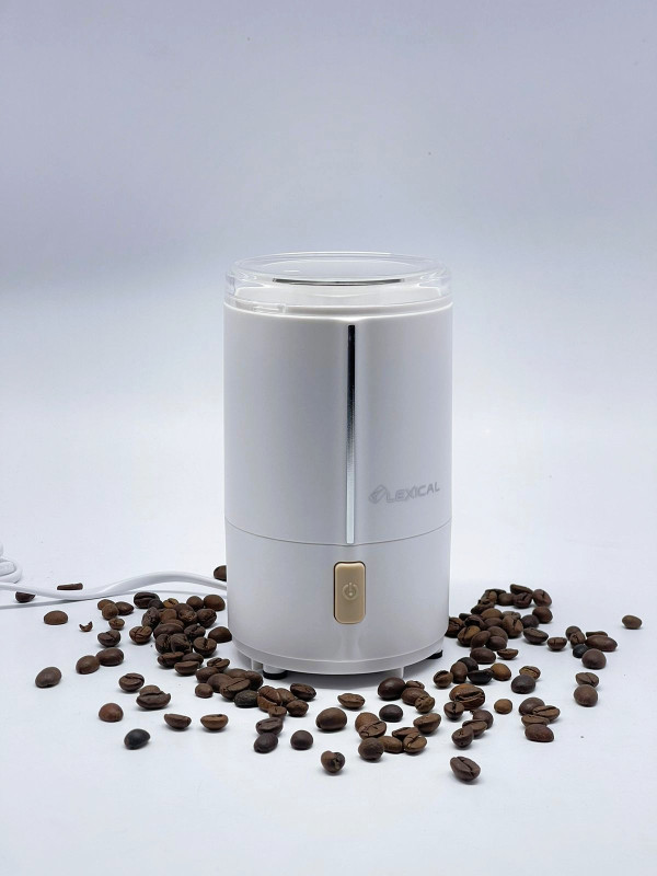 Moulin à café 200W Lexical-LCG-0701 - Interrupteur de sécurité d’activation du couvercle - Lames et coupelle en acier inoxydable Capacité 50ML- Moteur entièrement en cuivre, faible bruit -Grand bouton rectangle pour une utilisation facile- Pieds en caoutchouc antidérapant - Garantie : 12 Mois