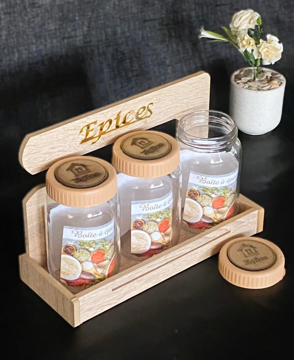 Set de 3 pots porte épices avec support