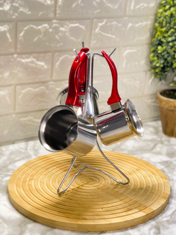 Set De 3 Pots De Café Zazwa en inox - instrument idéal pour préparer un délicieux café dans un clin d’œil - vous pouvez l'utiliser avec différent manière d'une part et des tailles différentes qui vous donnent des choix selon votre besoin d'autre part - Couleur: Rouge