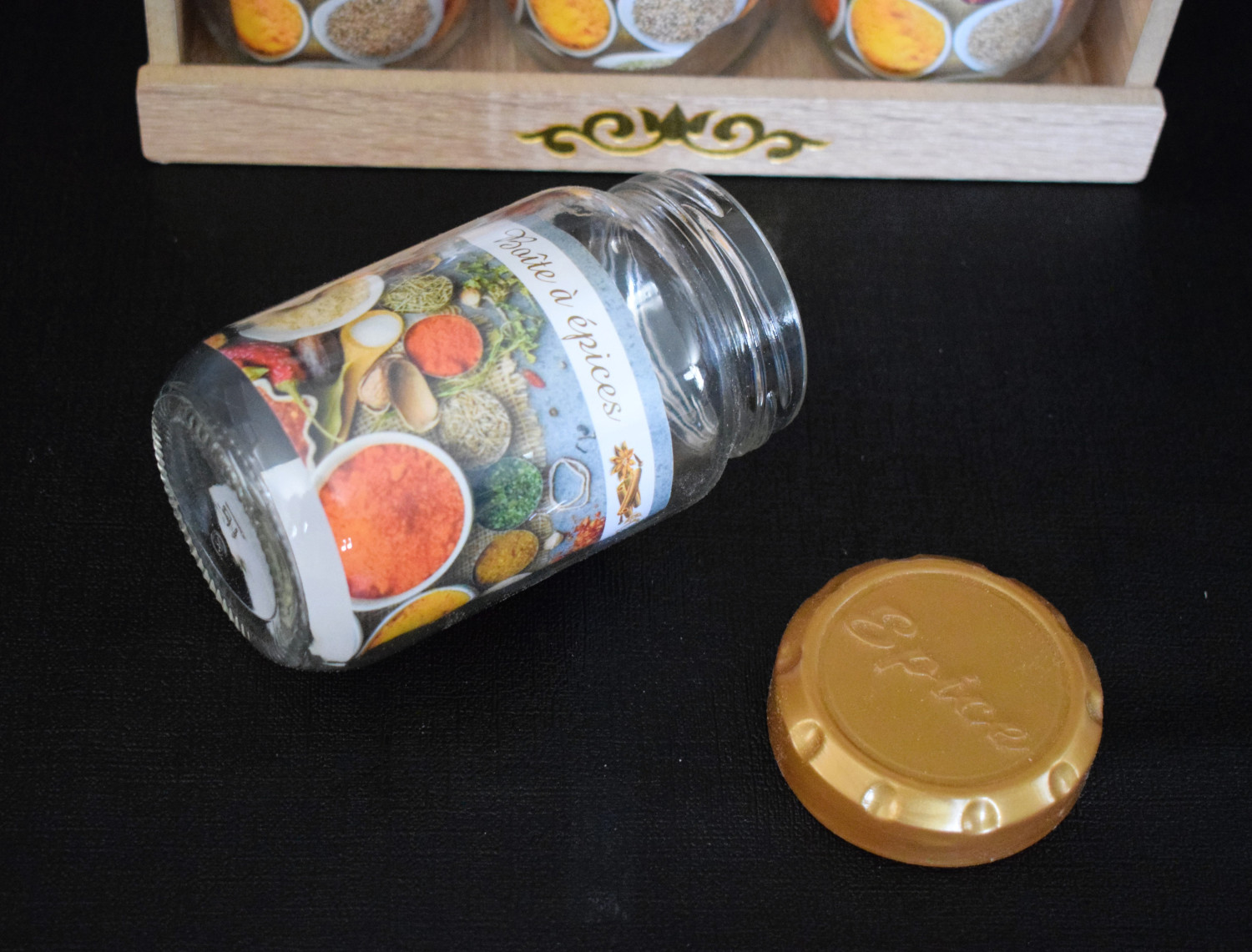Support boite épices 6pcs en bois